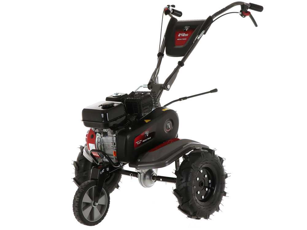 La motobineuse est munie d’une fraise à six étoiles avec 33 cm de diamètre pour une largeur de travail de 81 cm et une profondeur de 30 cm ; elle est facile à manœuvrer grâce à la poignée ergonomique réglable en hauteur et aux commandes sur les poignées.