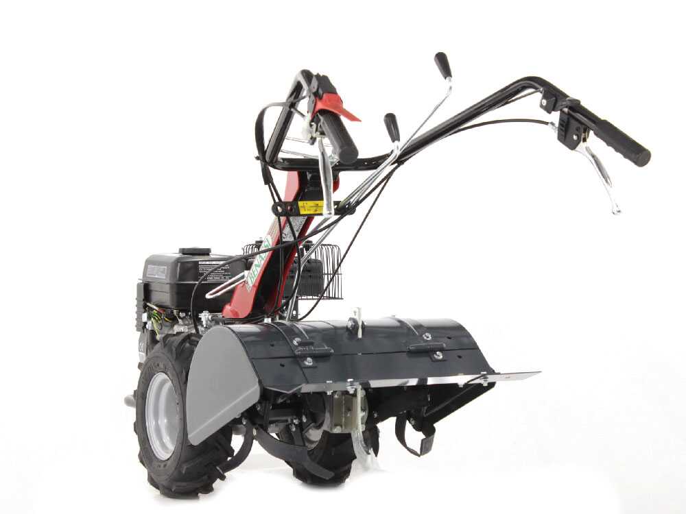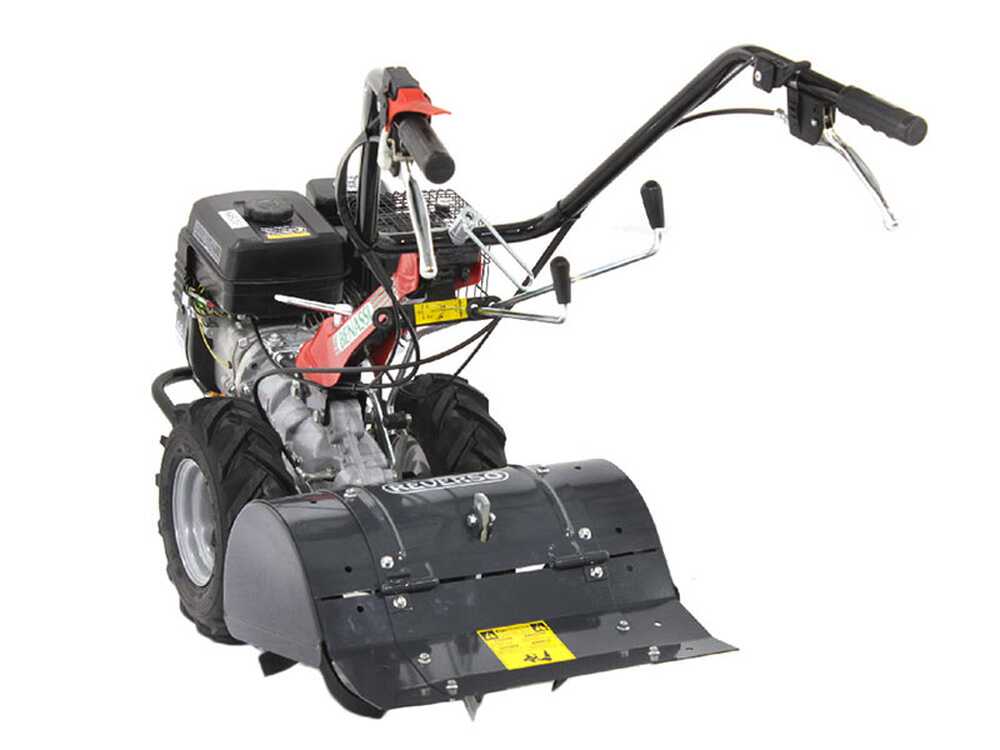 Motoculteur autotracté avec moteur à essence 4 temps, poussé par les grandes roues agraires animées reliées à une transmission à engrenages à bain d’huile.
